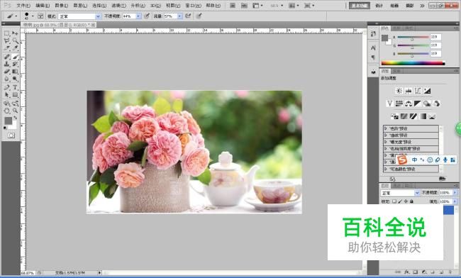 比如我们有一张照片,其实左边的花还好一些,右边的杯子就比较模糊了。(那我们着重的让杯子清晰点)