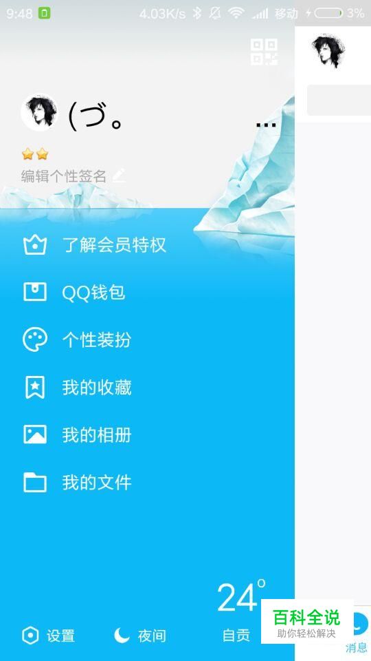 点击“头像”,打开“侧边栏”。