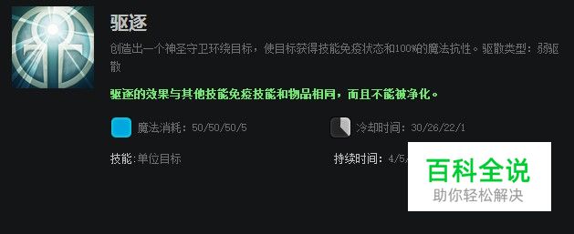 驱逐也就是俗称的套子,能够给选定目标提供魔法免疫的效果。
