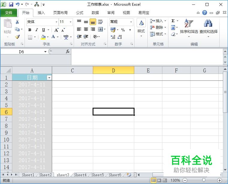 使用鼠标左键单击工作表中任意的单元格。