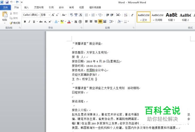 打开Word文档,输入需要的文字,给文档适当排版,调整字体颜色等。