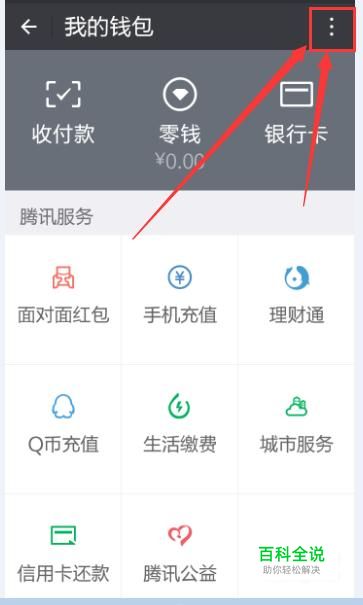 如图,点击我的钱包右边的三个小圆点,这是一个菜单按钮。