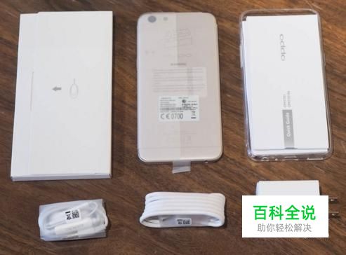 盒装内配件如下包含A57、保固说明书、退卡针、传输线、耳塞式耳机、充电器,以及透明硅胶保护壳