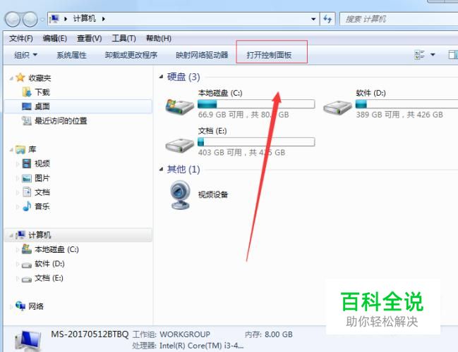 首先打开电脑桌面计算机图标。打开在上方选择“打开控制”面板