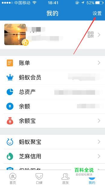 点击“我的”页面右上角的“设置”按键。