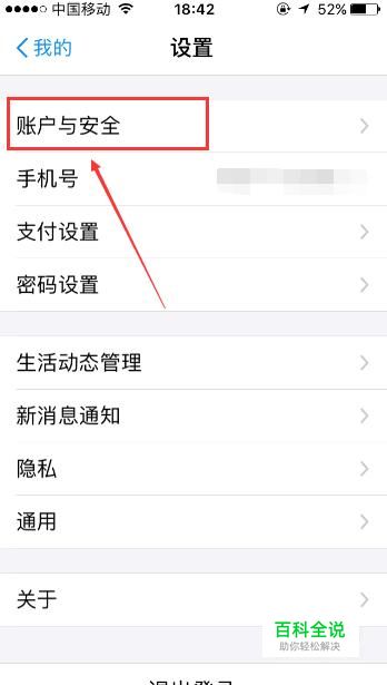 进入“设置”页面后接着点击页面中的“账户与安全”按键。