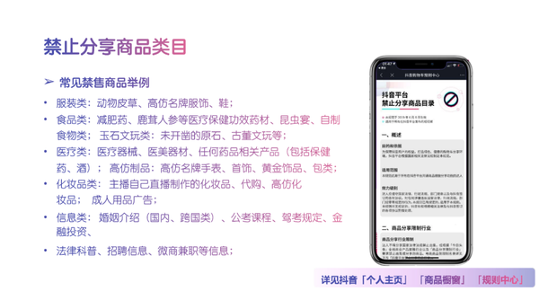 无论是做抖音,还是其他平台的直播带货,平台规则一定要严格遵守。下面是我们为大家梳理的部分「禁售商品」 「红线内容」。