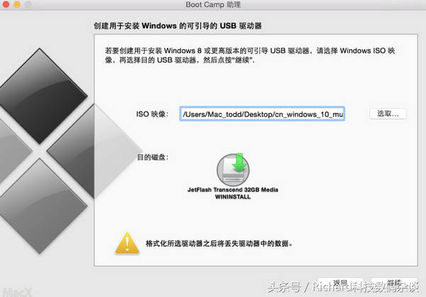 4、选择下载的镜像ISO, 目的磁盘就是你的U盘。