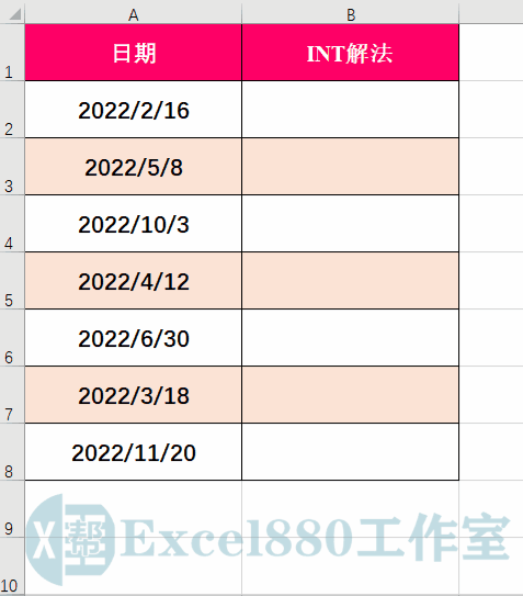 3、按【Ctrl Enter】组合键确认,即可应用INT函数公式计算日期,效果如下图所示。