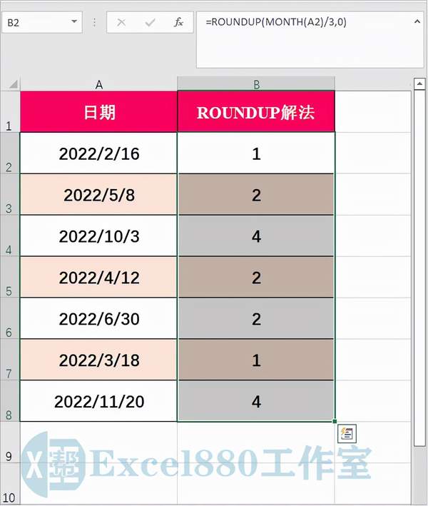好了,今天有关在Excel中计算季度的4种方法便介绍到这,大家赶紧实际操作练习一下吧,有不懂的问题可以留言问小编呦!感谢支持Excel880工作室,还请多多转发,持续关注我们呀!