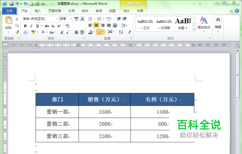 打开一个word文档,插入表格,并在表格中输入数据,设置表格和文本的格式及样式。