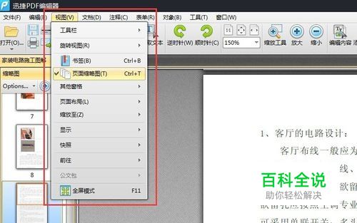 文件打开后与阅读器打开相同,可以正常浏览文件内容。窗口左侧是页面缩略图,可以快速切换页面。如果当前无缩略图窗口,可以在“视图”菜单中选择页面缩略图。