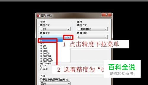 点击精度下拉菜单,选着精度为 “0”。