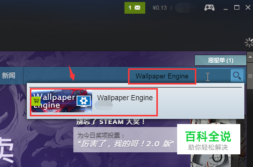 打开后,在商店下搜索Wallpaper Engine,弹出搜索结果,点击进入,如图所示
