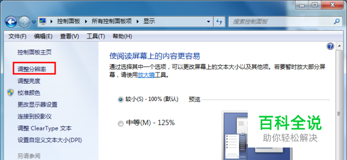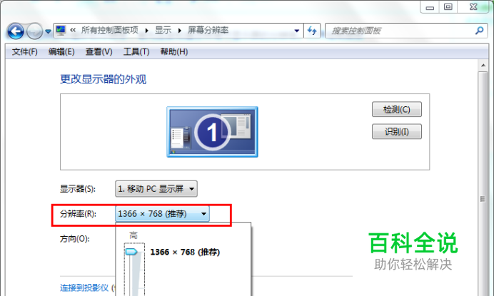 点击调整分辨率显示如下图:检查标记为“(推荐)”的分辨率。这是您的 LCD 监视器的原始分辨率,通常是您的监视器可以支持的最高分辨率。