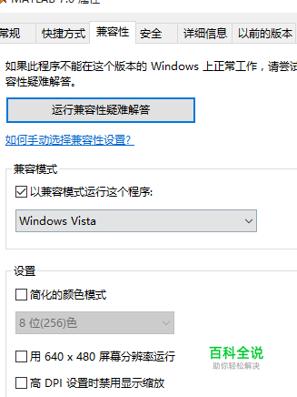 2.再在兼容模式选中“用兼容模式运行这个程序,然后再选择windows vista"