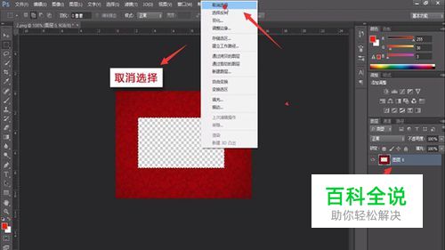 然后将鼠标放在区域中点击鼠标右键,左键选择取消选择,然后我们在右边的图层面板中看到图层0,鼠标左键选中他点击右键选择混合选项。