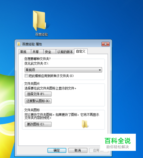 在桌面选中需要变透明的文件夹,右键点击属性,切换到自定义选项卡