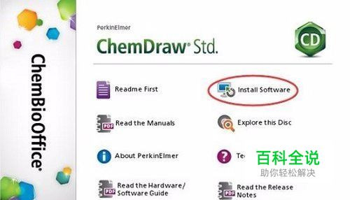 ChemDraw安装教程具体步骤如下: (1)打开ChemDraw Std 14的安装包,将出现下图中的安装窗口,单击“Install Software”(安装软件)即可。