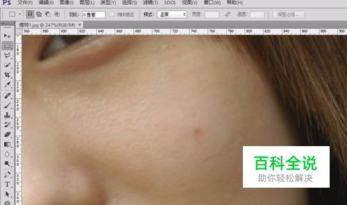 首先,在PS软件中打开需要处理的照片,并把需要祛除的痘痘放大。