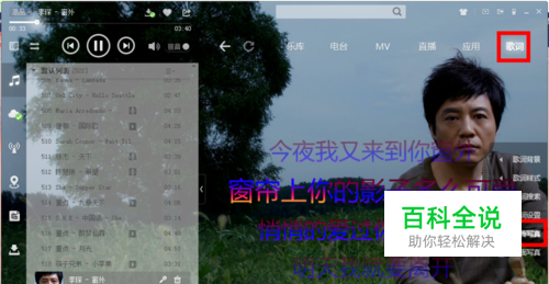 选择“歌词”栏,在歌曲窗口中的右侧可以看到“上传写真”,点击它。