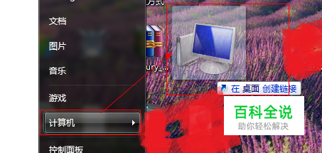 如图,按住右侧菜单中“计算机”向桌面拖,就可在桌面上看到计算机了(计算机 - 快捷方式)。要是不想要快捷方式,可以用下面的方法。