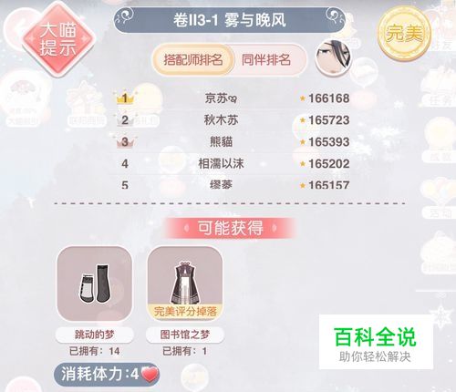 除了正文观看和番外就是3个支线,包括支1 “冒失的少女”、支2 “甜美的露营”、支3 “好久不见”,直接查看大喵过关和完美提示,拿出已集齐的服饰搭配,没有的可以适当购买、制作来搭。 温馨提示:一定要记得完成支线任务,一般支线的成就获得奖励多些,特别是公主级支线关卡。