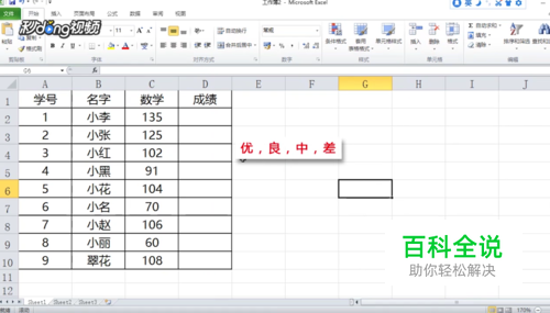 选择“成绩”下面的第一个空白单元格,在公式编辑栏中输入图片上的公式
