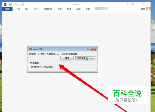 word文件损坏以后,使用word软件打开会收到word软件的提醒文件已经损坏。