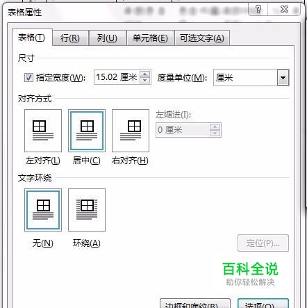 PS: 如果出现表格外有文字,希望文字出现在表格下方,表格属性【文字环绕】选择“无”