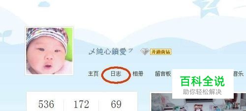 进入到qq空间以后,在空间页面的导航栏上面点击日志,如图所示: