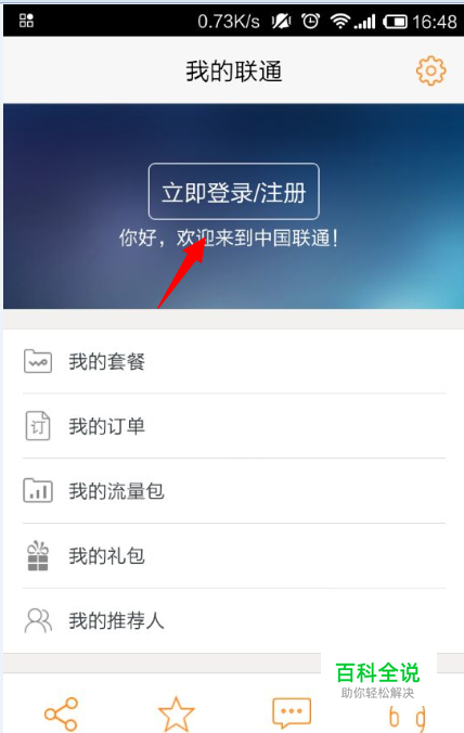 打开手机“联通营业厅”,进入登录界面,输入账号密码进行登录