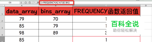 参数说明: data_array:表示要统计出现频率的数组或单元格区域。 bins_array:表示用于对data_array中的数值进行分组数值或单元格引用。