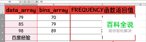 注意事项: ①FREQUENCY函数返回的数组元素个数比bins_array中元素个数多一个,则多出的元素表示最高分组以上的数组个数。