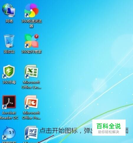 打开电脑,点击电脑桌面左下角的开始图标,弹出一页面