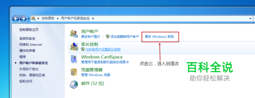 打开的页面中找到“用户账户”下的“更改windows密码”并点击打开新页面