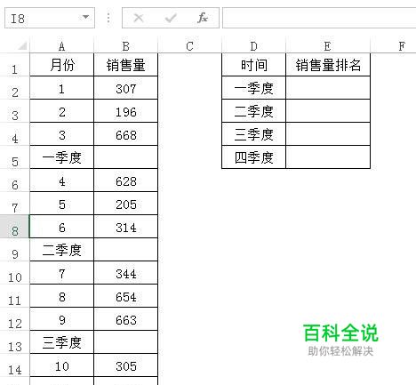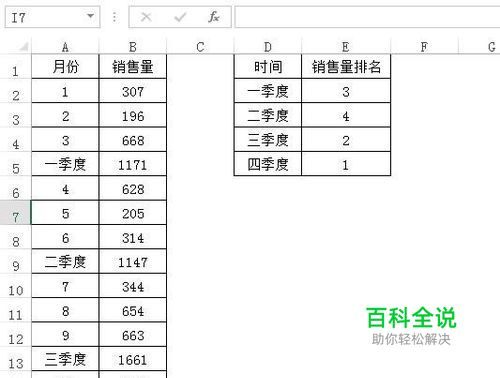 回车后我们得到第一季度的排名,我们现在要来求下面三个季度的排名,将公式进行填充。