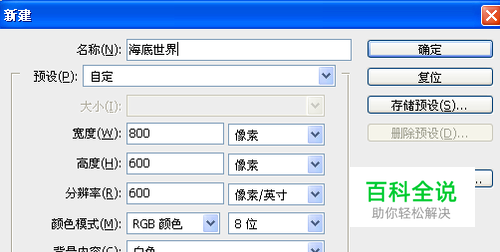 点“文件”——“新建”,新建一个大小800*600位像素的RGB文件。