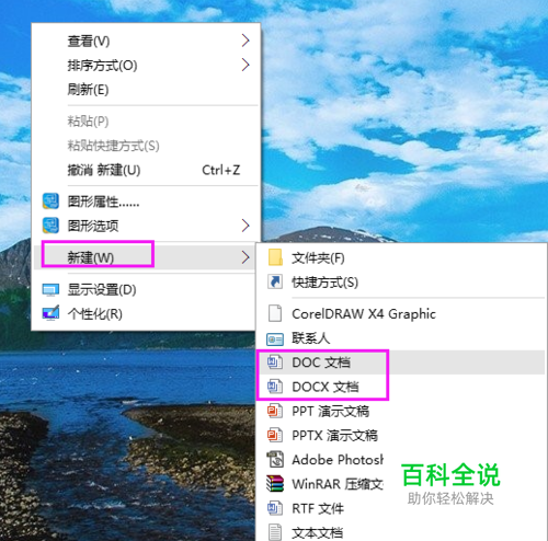 Word如何快速制作考勤统计表?桌面任意位置单击下,选择新建-word文档,如图。