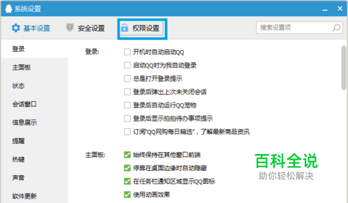 登陆后点击QQ主面板最下方的“系统设置”按钮,打开系统设置窗口;