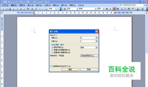 弹出“插入表格”面板,我们在表格尺寸下方的行数和列数都输入2,即插入一个2行2列的表格,确定