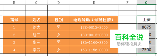 此时查看表格效果,“工资“一列的内容已经被隐藏了,测试成功!