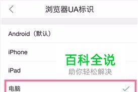 在浏览器UA标识菜单页面里,点击【电脑】