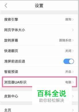 在弹出的设置菜单页面里,点击【浏览器UA标识】