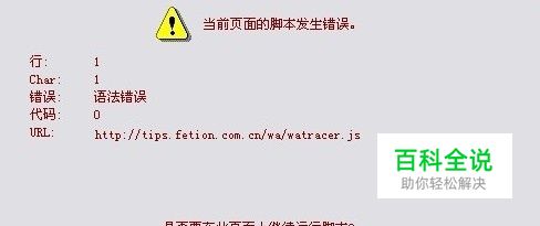 当前页面的脚本发生错误(语法错误)怎么办?看着看着某个页面,突然弹出这样一个“当前页面的脚本发生错误(语法错误)”错误提示窗口,让人着实很反感,那么下面我来说下怎么解决当前页面的脚本发生错误(语法错误)。