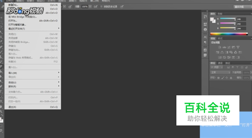 鼠标左键双击打开ps软件,鼠标左键单击菜单栏的“文件”,点击“打开”。