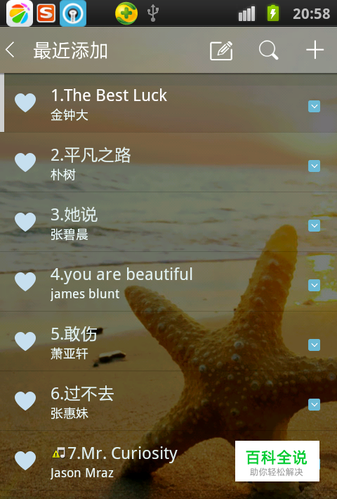 选中在播放器中设置的歌曲,即信息铃声设置完成。完成后,你一有信息来,就会想起“小情歌”的音乐声啦