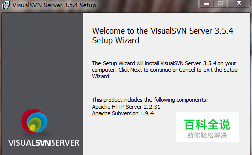 我们安装是svn3.5.4版本的,首先双击exe文件打开它。我们在这里看到了欢迎页面,点击 next下一步。