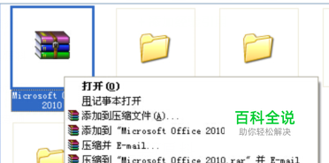 解压软件。鼠标移至文件处,右键,选择“解压到Microsof office 2010”