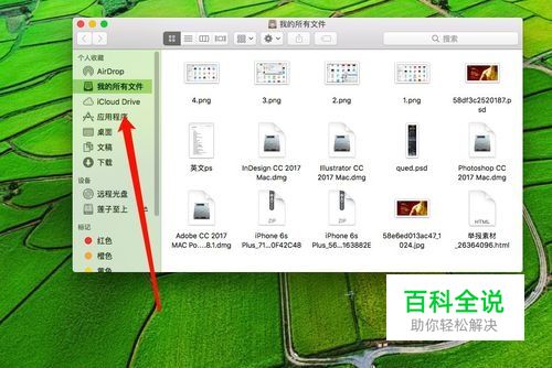 首先呢,开机,打开您的电脑页面,点击finder,看小编箭头所指的位置